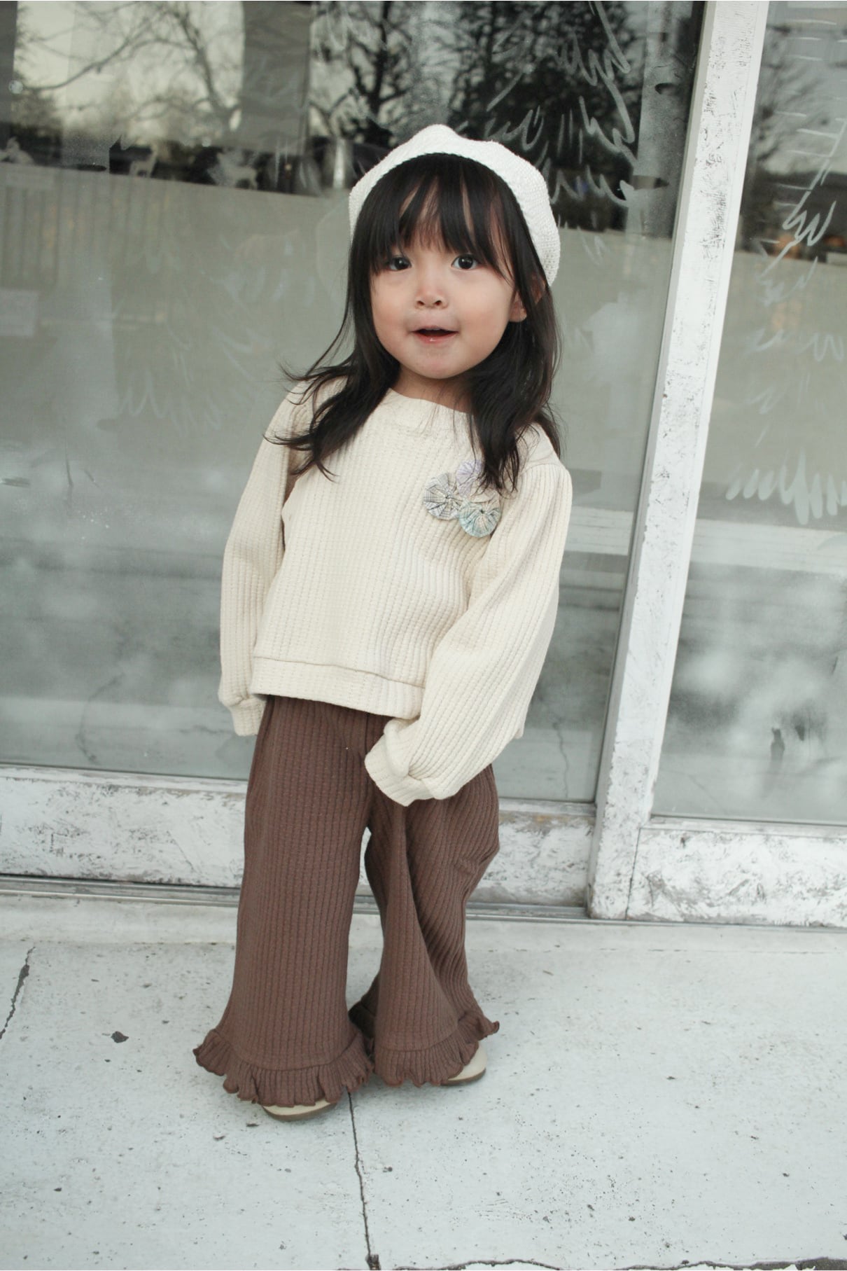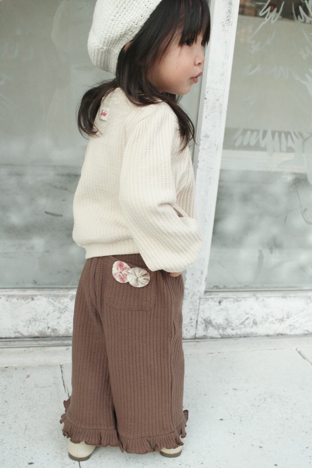 【予約】Bohe Atelier*[Bohe Handmade] yoyo brooch TOP (ivory) 韓国子供服 ベビートップス キッズトップス
