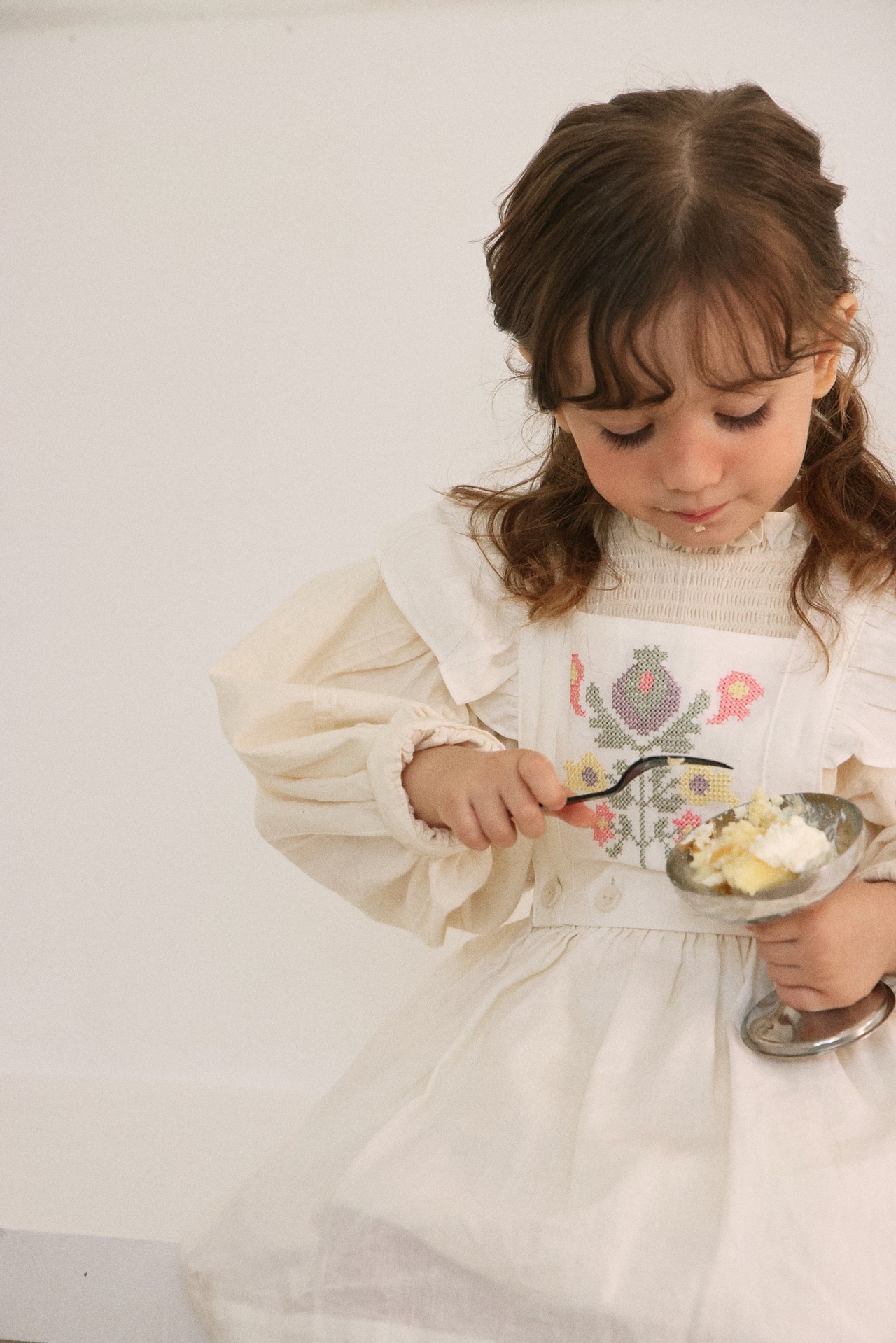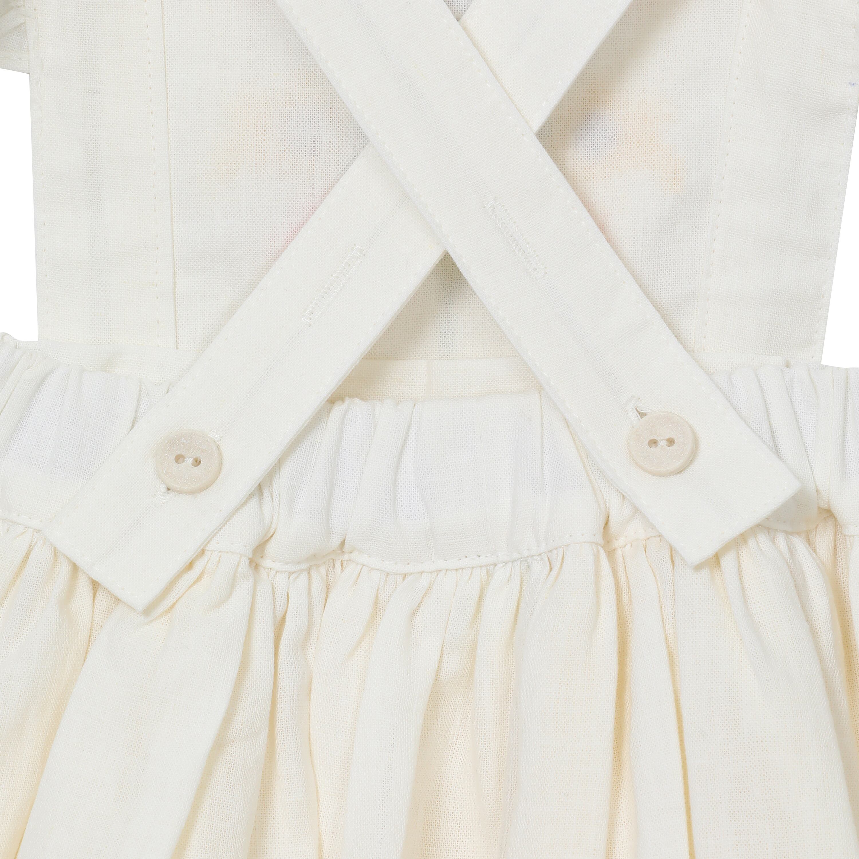 おうちにあるどんなトップスやワンピースにもあわせやすいエプロン。存在感のある刺繍が、特別感を醸し出してくれます。成長に合わせてサイズ調整ができるので、長く大切に着られます◎