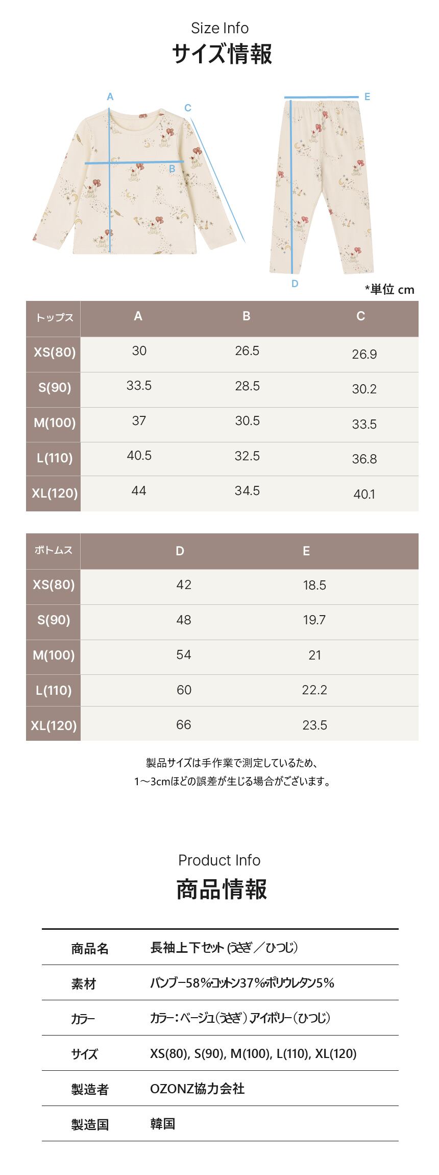 XS(80)/S(90)/M(100)/L(110)/XL(120)