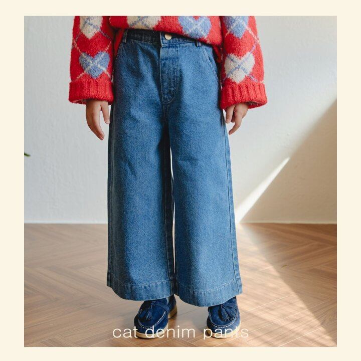【予約】Mon Atelier*Cat denim pants 韓国子供服 ベビーボトムス キッズボトムス