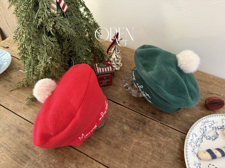 【予約】Oren*Eve Fur Pom Pom Beret 韓国子供服 ベビー帽子 キッズ帽子