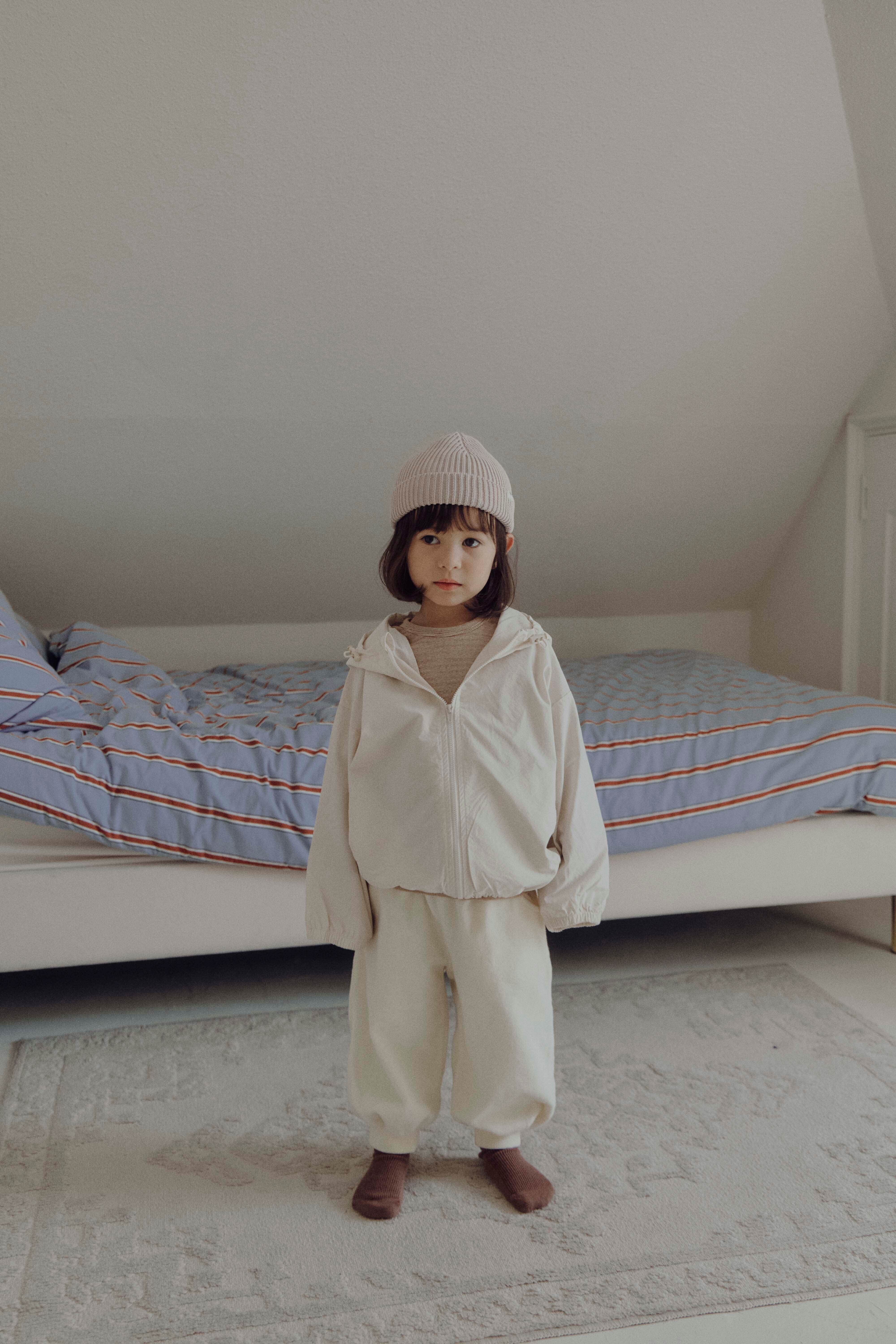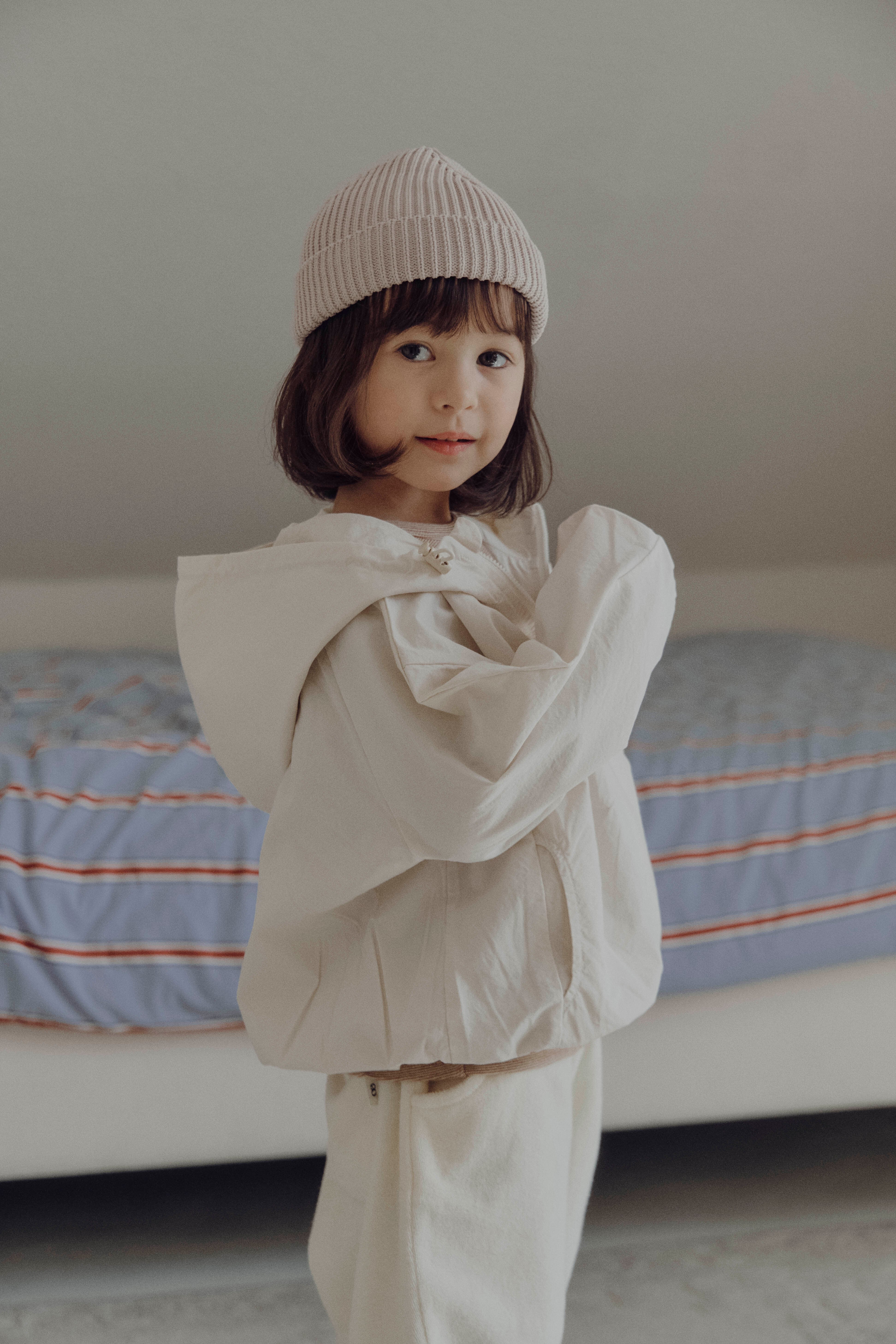 cottonならではのやわらかいタッチが特徴のウィンドブレーカー。動きやすいデザインで、機能性とデザインが両立した1着。