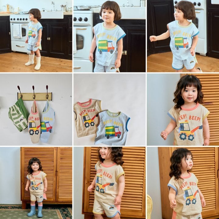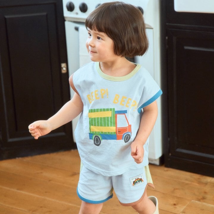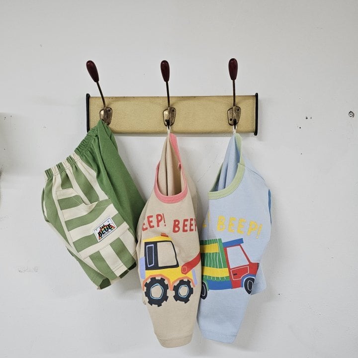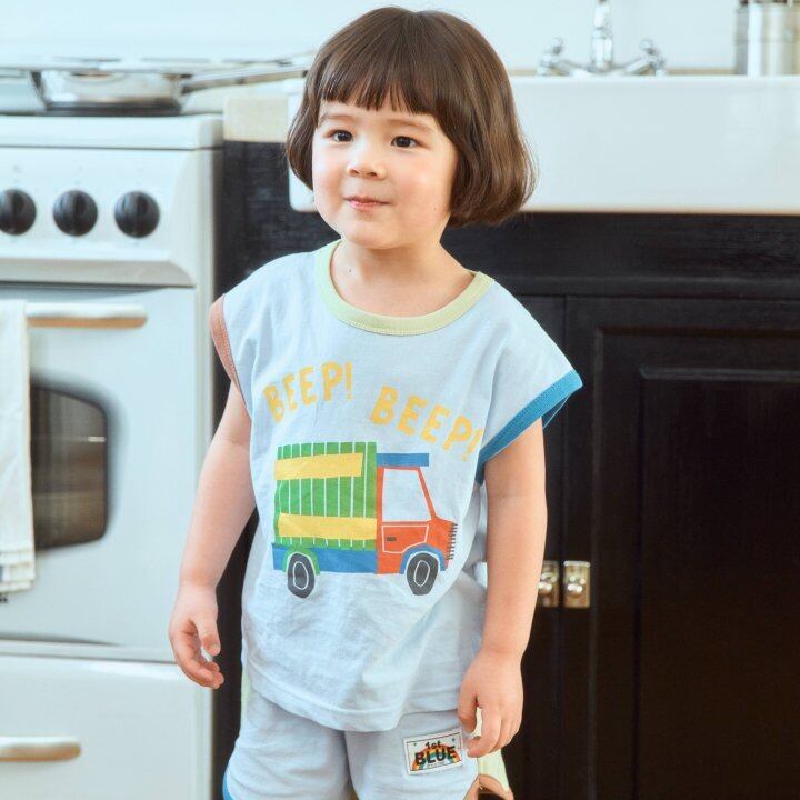 【予約】firstblue*Car sleeveless T-shirt 韓国子供服 ベビートップス キッズトップス