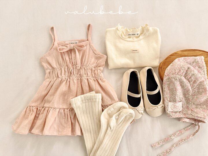 【予約】valuebebe*Shirring strap one-piece dress 韓国子供服 ベビーワンピース
