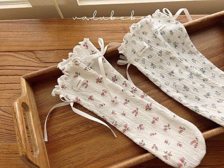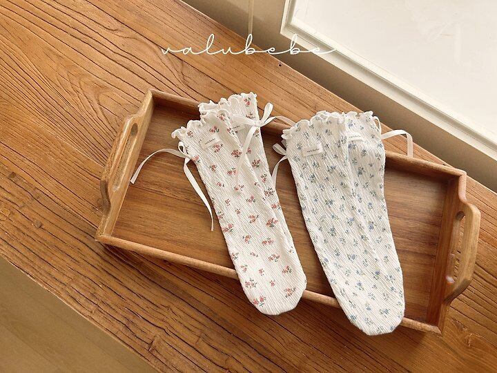 【予約】valuebebe*Floral ribbon doldo socks 韓国子供服 ベビー靴下