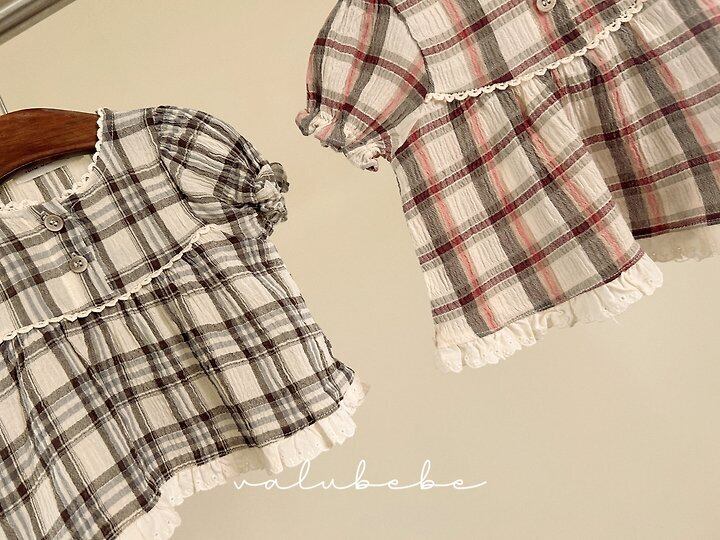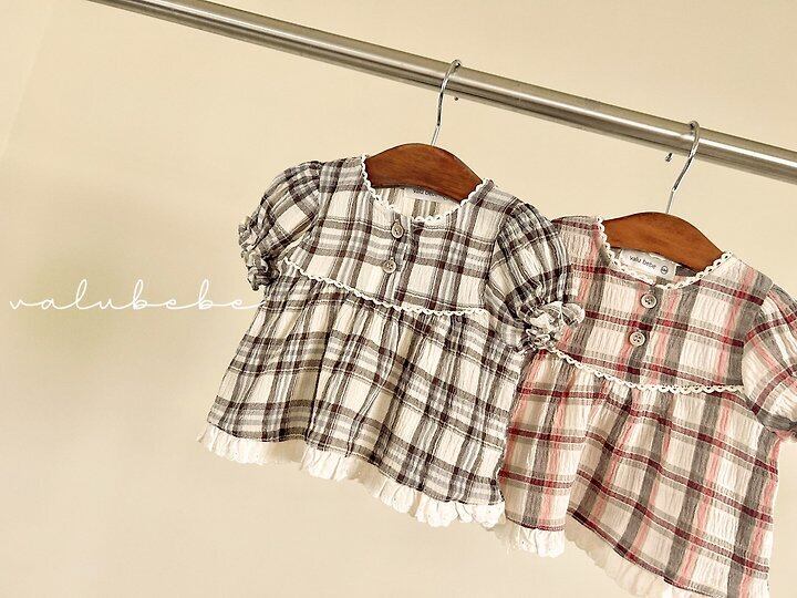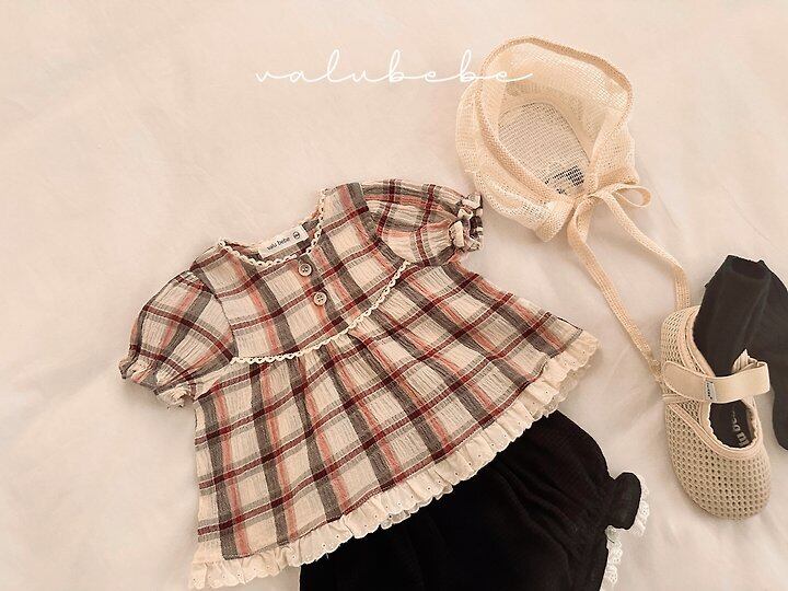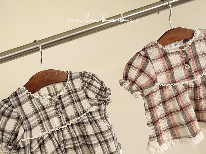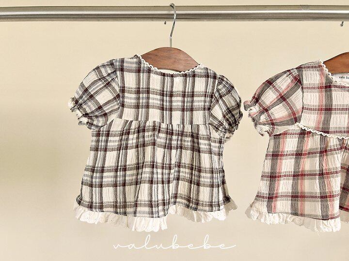 【予約】valuebebe*Check check puff blouse 韓国子供服 ベビートップス