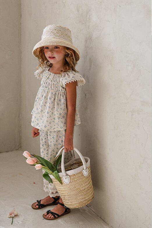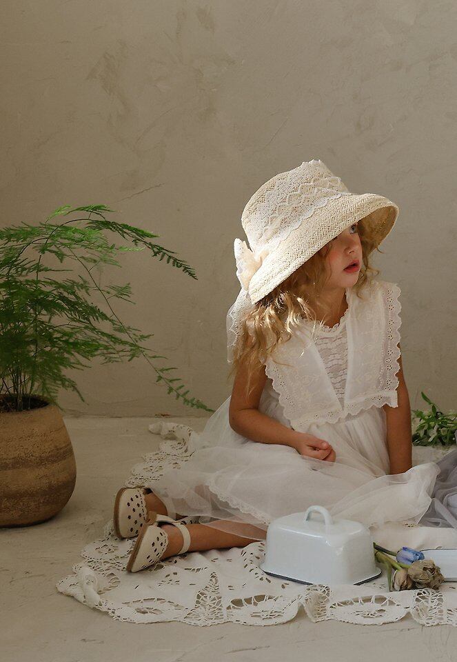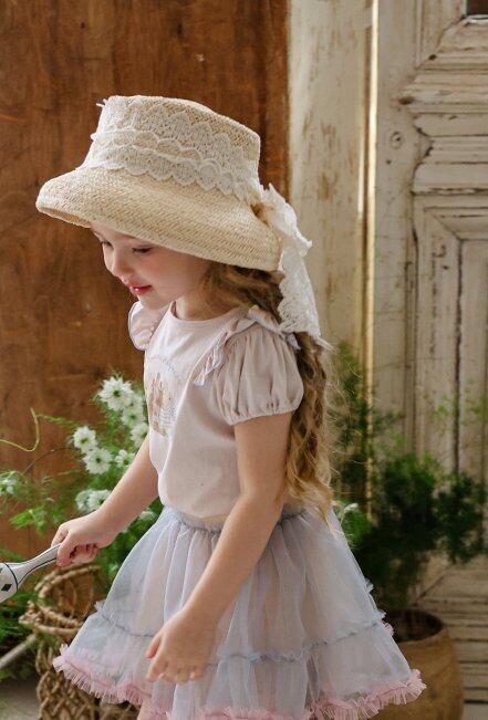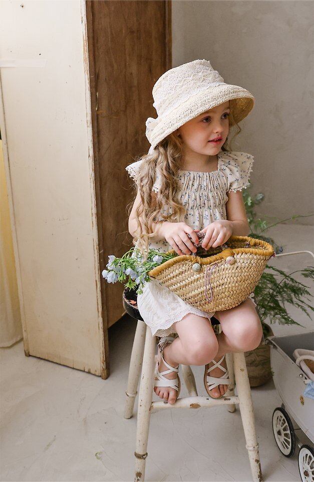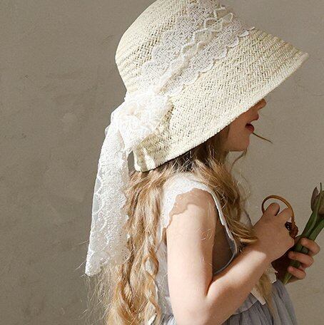 【予約】Puella flo*Marceau Race Straw Hat 韓国子供服 ベビー帽子 キッズ帽子