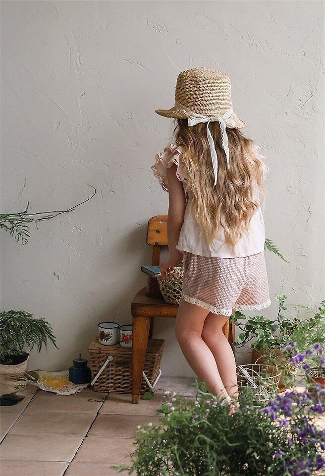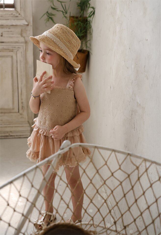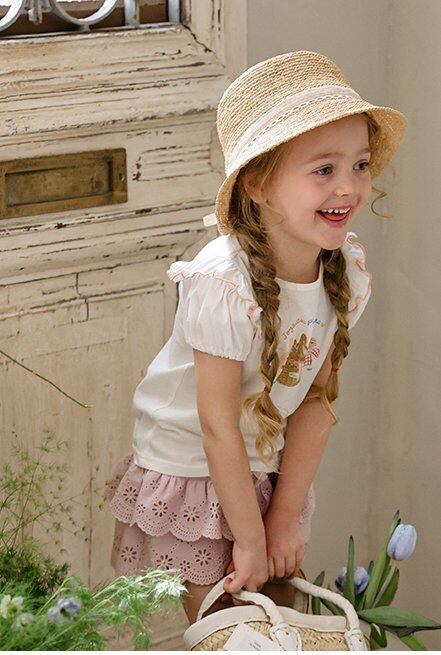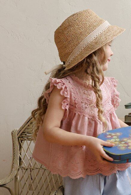 【予約】Puella flo*Buffy Lace Straw Hat 韓国子供服 ベビー帽子 キッズ帽子