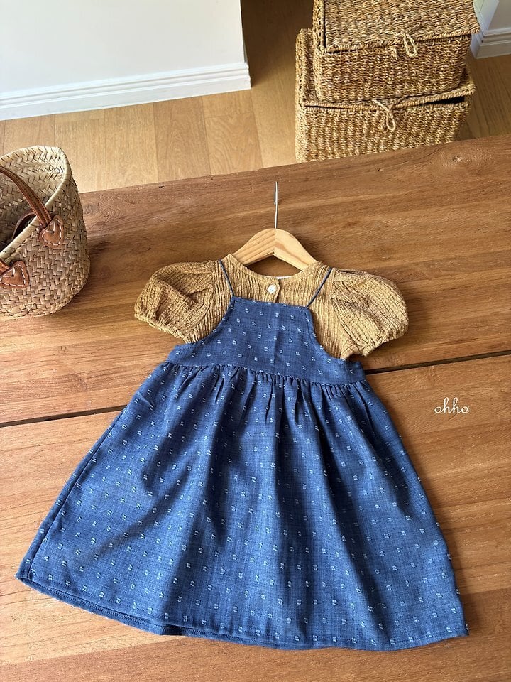 【予約】ohho*pom-pom strap dress 韓国子供服 ベビーワンピース キッズワンピース