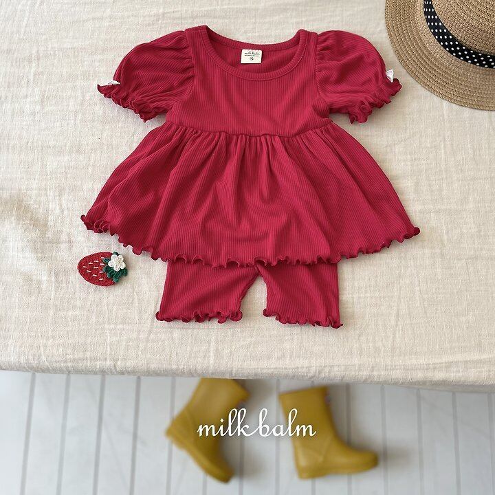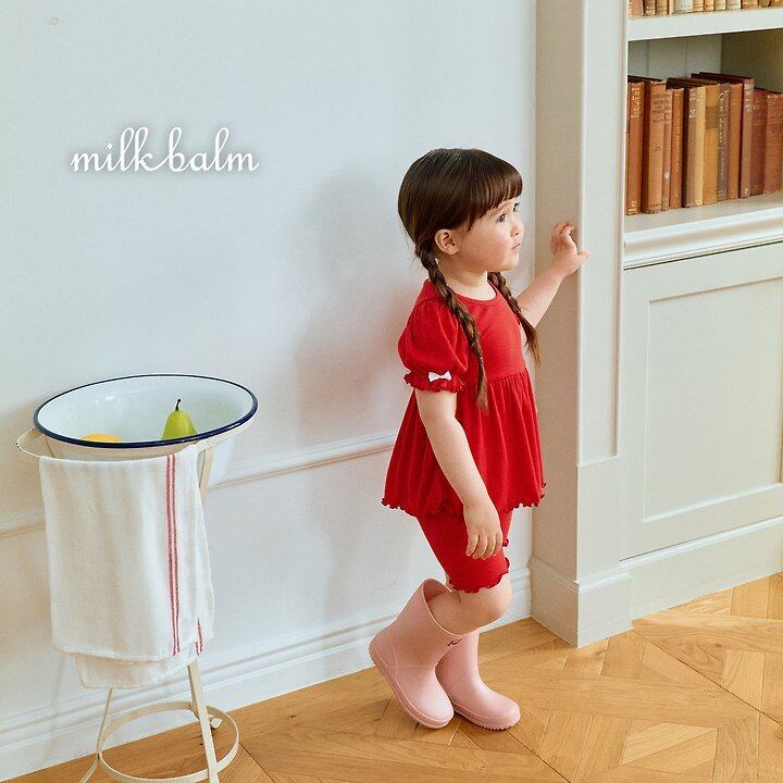 【予約】milkbalm*Ribbon ribbed setup 韓国子供服 ベビーセットアップ キッズセットアップ